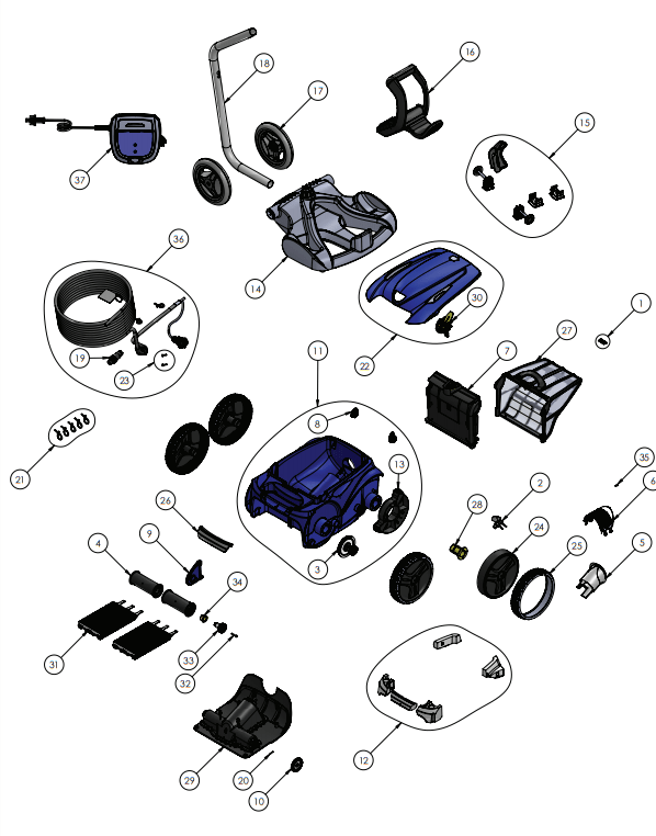 Ersatz- und Austauschteile für den Poolstaubsauger RV 5300 von Zodiac.