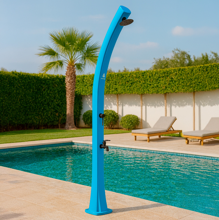Lembre-se de que quanto mais escura for a cor, maior será o rendimento do calor do sol. Coloque sempre na área mais ensolarada durante o dia. Não encontrará nenhum chuveiro cinza à beira da piscina com o mesmo aquecimento solar!