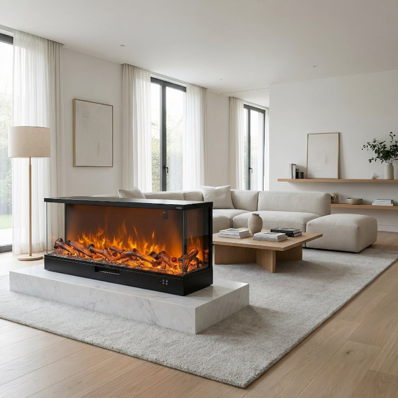 Seja numa cidade moderna ou numa casa de campo tranquila, a moderna lareira elétrica de três lados adapta-se perfeitamente a qualquer ambiente: de casa ao escritório, de hotel a pousada. É a solução ideal para quem procura não apenas uma lareira, mas uma verdadeira peça de mobiliário capaz de criar uma atmosfera especial.