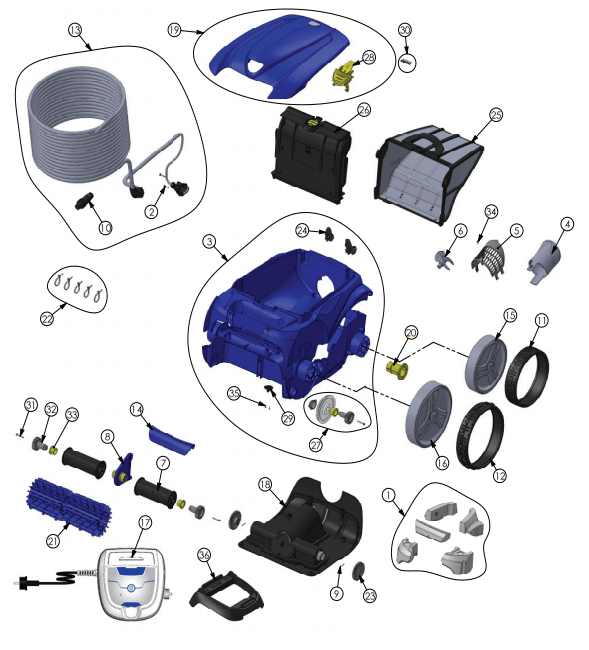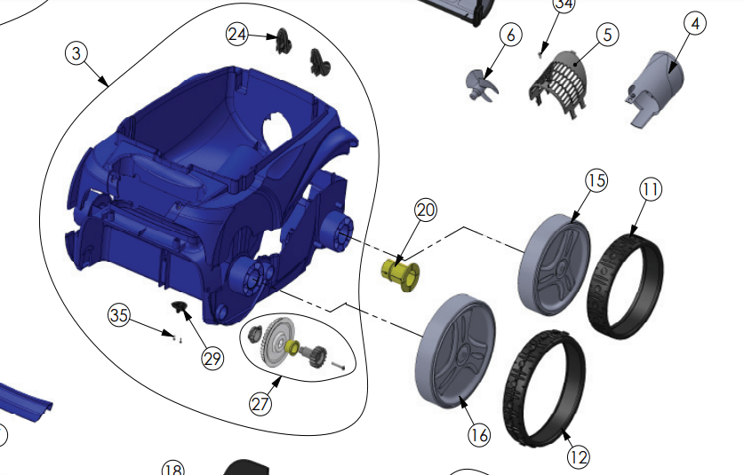Piezas de repuesto para el limpiafondos RV 4200 TILE de Zodiac.