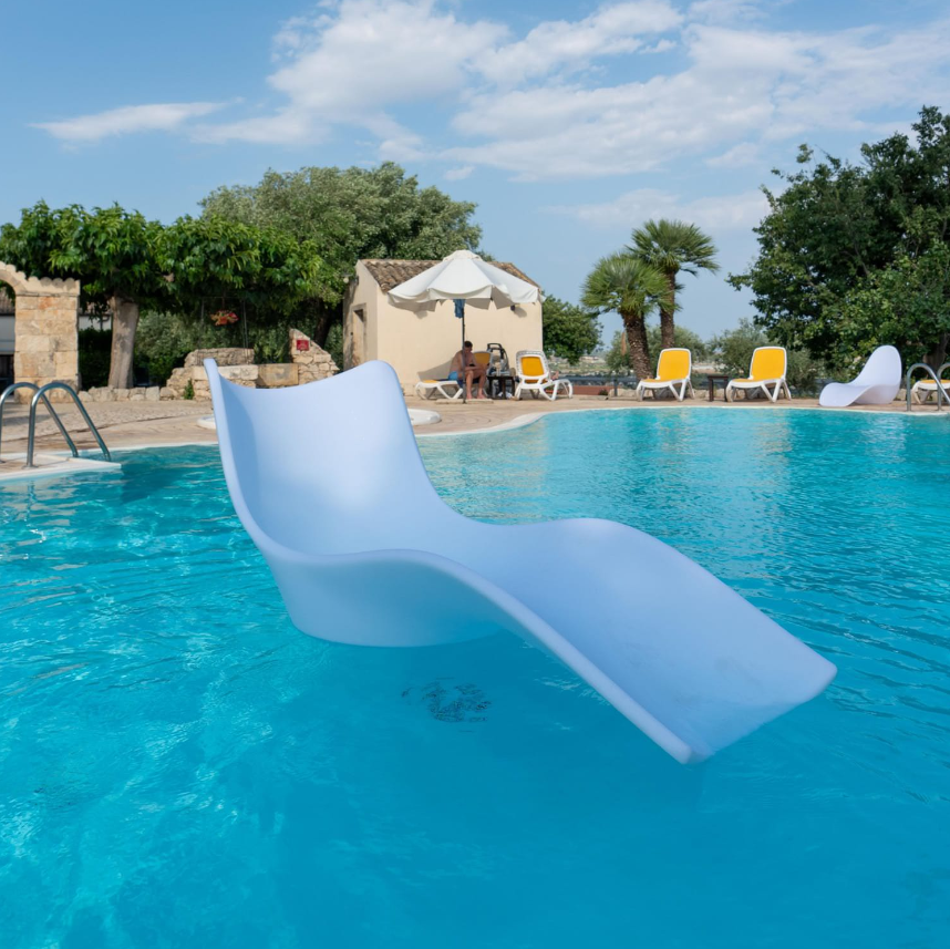 Espreguiçadeira branca para piscina, jardim e praia, fabricada em polietileno de alta qualidade, resistente aos raios UV, ergonómica, leve e fácil de higienizar. Design moderno para todos os ambientes interiores e exteriores. A chaise longue foi anatomicamente concebida para proporcionar o máximo conforto ao corpo. Pode ser utilizada na água e flutua. Ideal para mar, praia, piscina, jardim, casa, varanda, área exterior, pátio, hotel e spa.