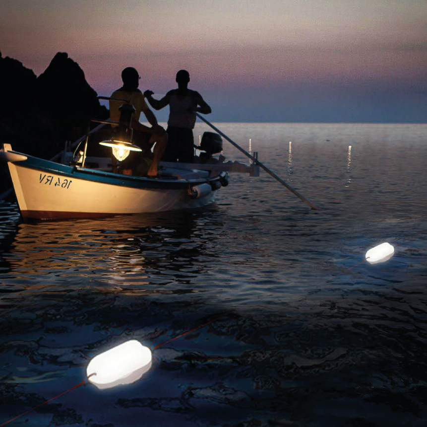 Boia flutuante brilhante feita de PE branco opaco. A boia recarrega-se automaticamente com a luz solar, sem necessidade de cabo de alimentação.