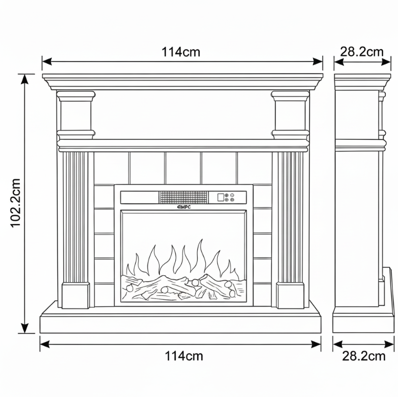 O tamanho generoso da moldura (1140x1023x282 mm) e o design moderno fazem com que esta lareira totalmente preta se integre harmoniosamente em qualquer divisão, enriquecendo-a com um toque de classe. O preto profundo confere elegância, enquanto a sua construção sólida garante durabilidade.