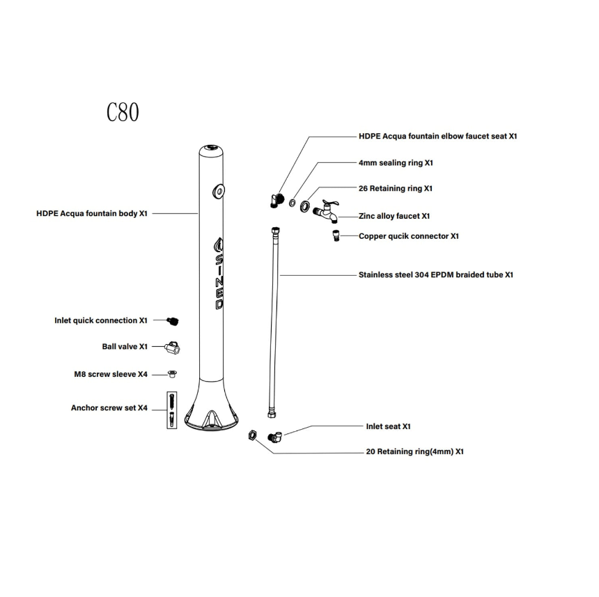 – Fonte fabricada em PEAD (polietileno de alta resistência) resistente aos raios UV, calcário e maresia.