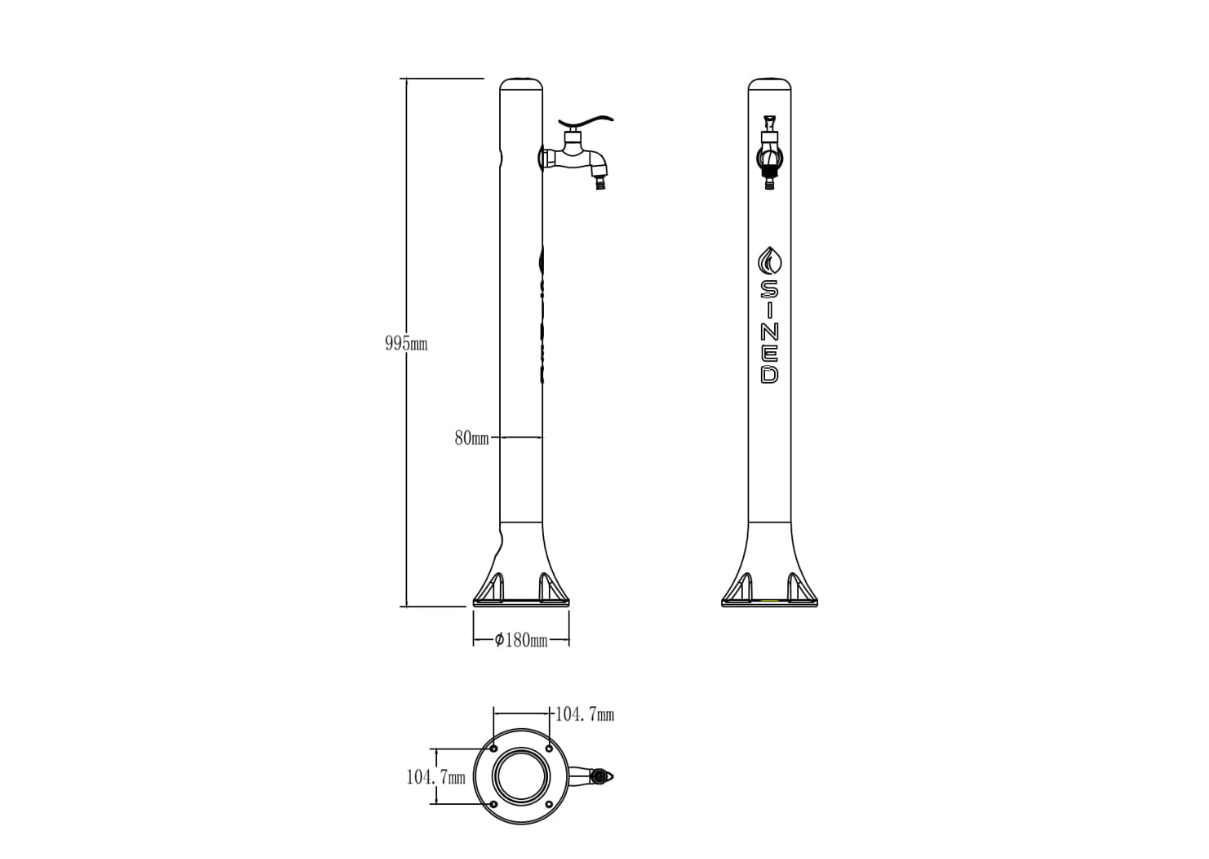 Recomendada também como peça de mobiliário urbano, considerando a qualidade da sua construção e os acessórios exclusivos. A ligação lateral de água é feita em HDPE (polietileno de alta resistência), resistente aos raios UV, calcário e salinidade, perfeita também para ambientes marinhos.