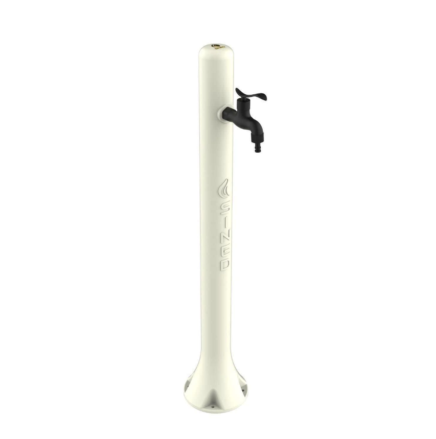 Prática, útil e económica, esta fonte de água fria branca para exterior possui uma torneira em liga metálica preta e uma ligação rápida para mangueira de jardim.