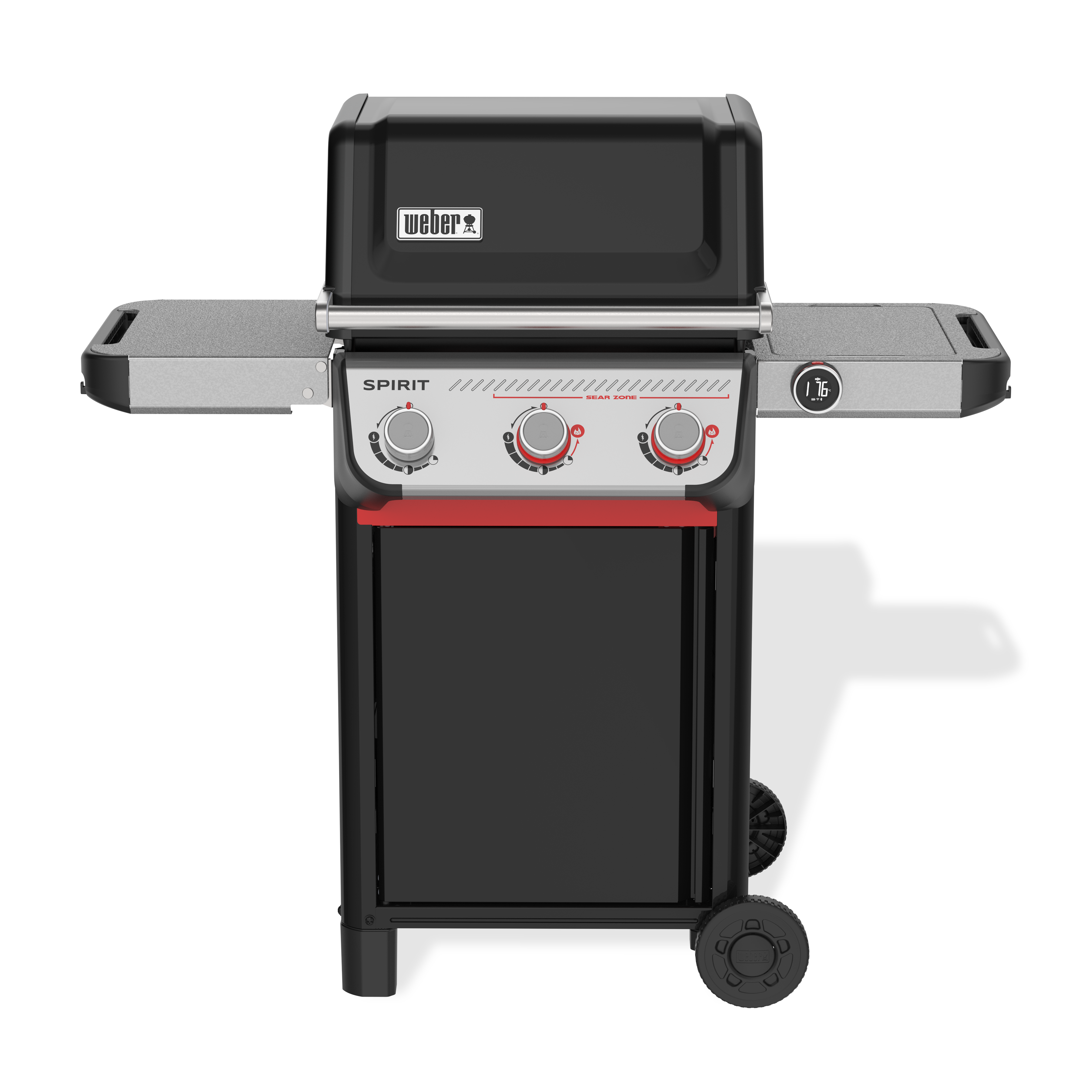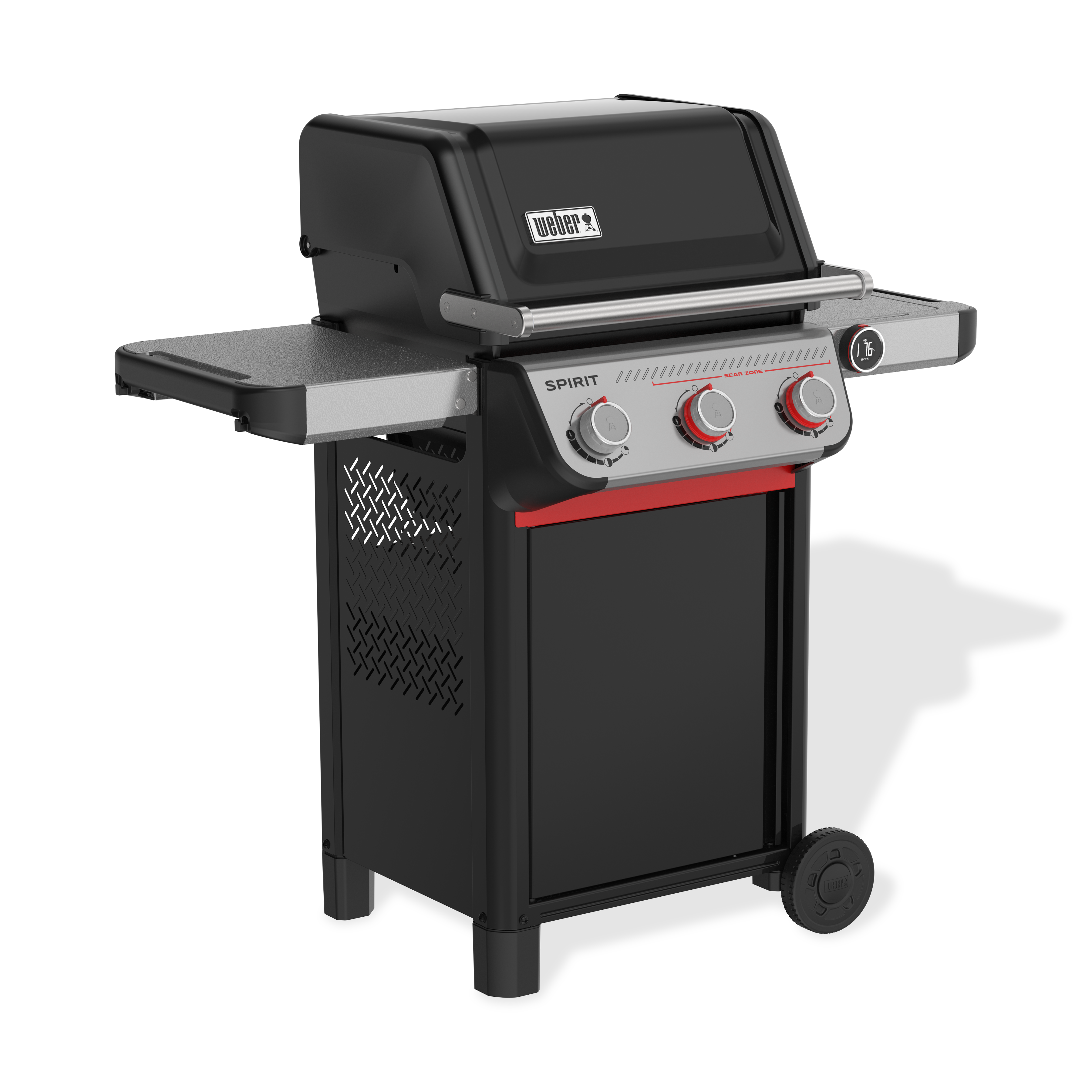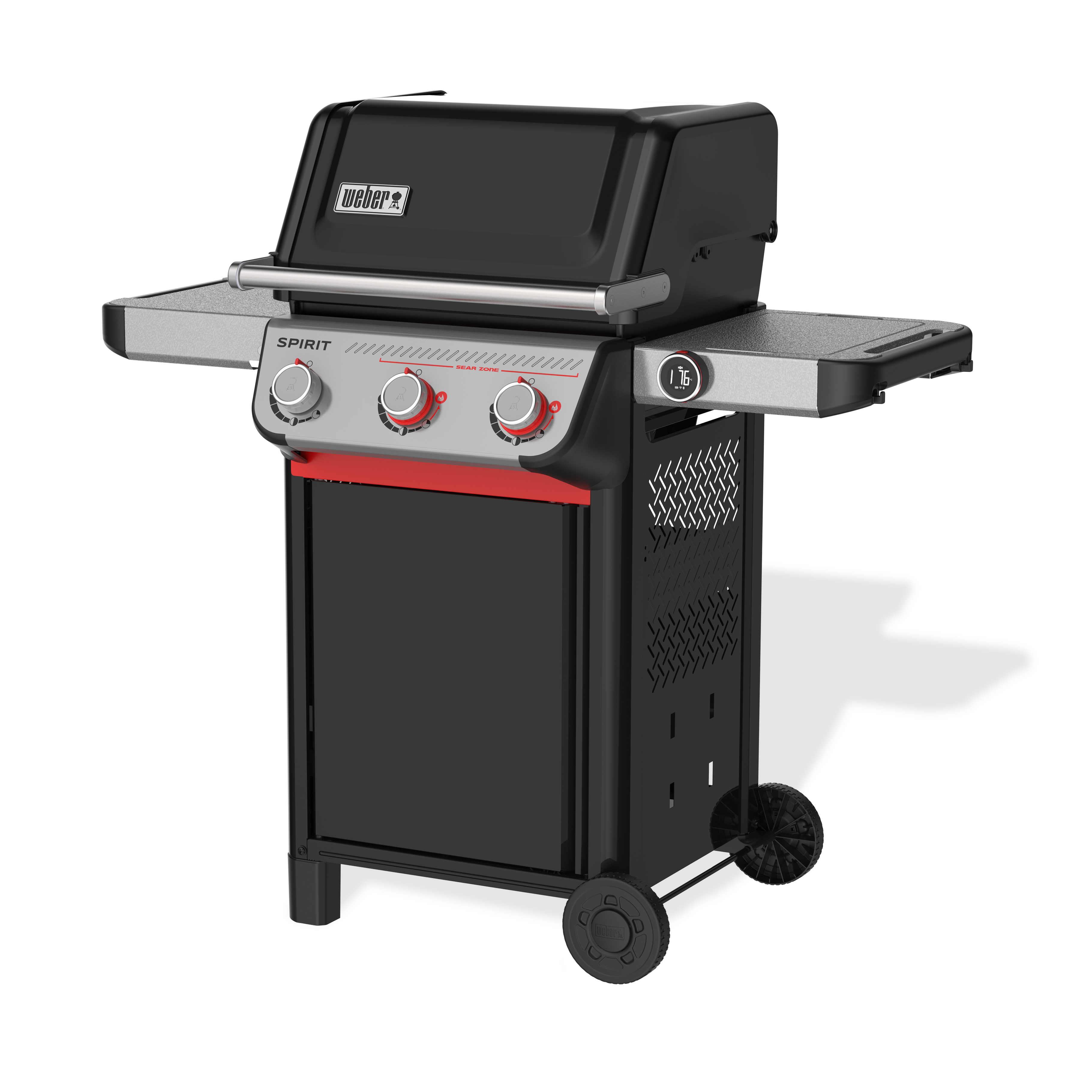 Grelhe alimentos com um sabor melhor do que nunca no reinventado grelhador a gás inteligente Spirit® EX-325 de 3 queimadores com Sear Zone e termómetro digital com Wi-Fi®. Os seus alimentos vão ficar sempre no ponto perfeito com o termómetro digital com Wi-Fi®, que inclui uma sonda para alimentos com fio. Emparelhe-o com a aplicação Weber Connect® para monitorizar remotamente e receber alertas no seu smartphone quando o grelhador estiver pré-aquecido e quando os alimentos estiverem prontos para virar. Crie marcas de grelha ousadas e saborosas em carne, peixe e legumes com dois botões vermelhos do queimador Boost para 40% mais potência na Sear Zone. Acenda facilmente cada queimador individual com a ignição Snap-Jet e controle o calor com precisão graças a um amplo intervalo de temperaturas, das mais altas às mais baixas e todas as outras variações. Tire o máximo partido do seu espaço, adicionando uma grande variedade de acessórios Weber Works que são pousados na mesa de apoio direita ou encaixam nas duas calhas laterais.* As grelhas de cozedura em ferro fundido com revestimento esmaltado robustas viram para apoiar os acessórios Weber Crafted® Gourmet BBQ System (GBS), proporcionando-lhe a máxima versatilidade para transformar o seu grelhador com uma placa, pedra para pizza, grelha para selar com padrão cruzado e muito mais.* Neste modelo, a mesa de apoio esquerda dobra-se facilmente para o grelhador caber em espaços menores.