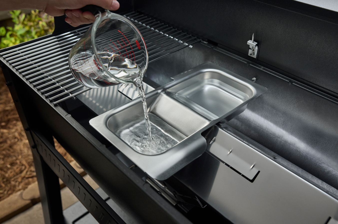 Este kit humidificador potencia o sabor a defumado com pellet, adicionando humidade ao calor. Foi especialmente projetado para o grelhador Searwood e para ser colocado abaixo da grelha de cozedura, sem ocupar o espaço destinado aos alimentos, e para recolher facilmente a sua gordura.