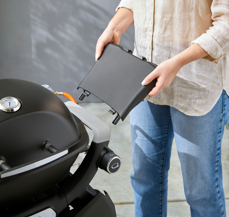 Prático kit de estantes laterais para o seu grelhador da série Q1000N, que ajuda a suprir qualquer necessidade de espaço adicional.
