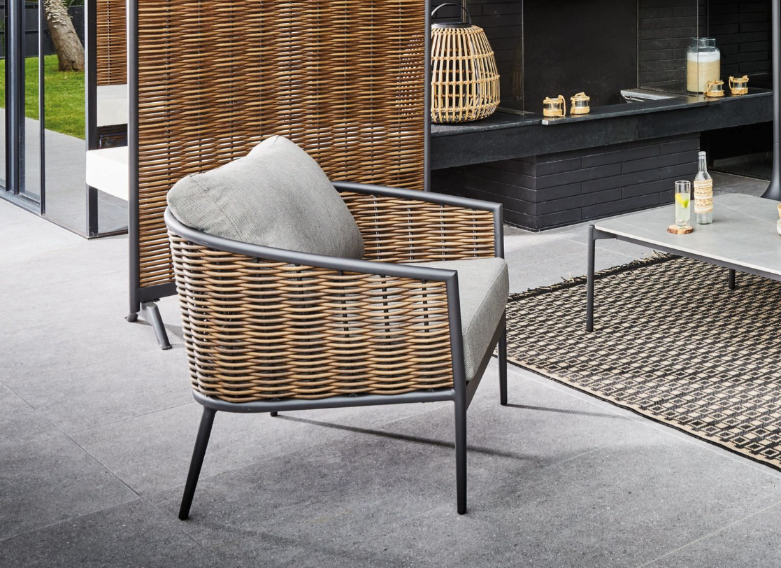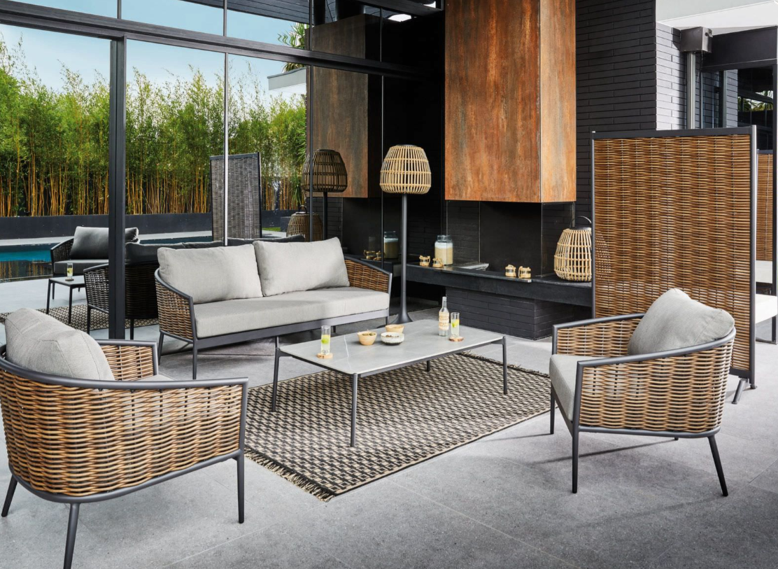 Conjunto de Sofá de Jardim SINED de 2 Lugares com 1 Poltrona em Vime, Cor Grafite, Estrutura em Alumínio com Revestimento Epóxi, Capas Removíveis em Poliéster, Materiais Resistentes à Intempérie, Vime de Alumínio – Asti