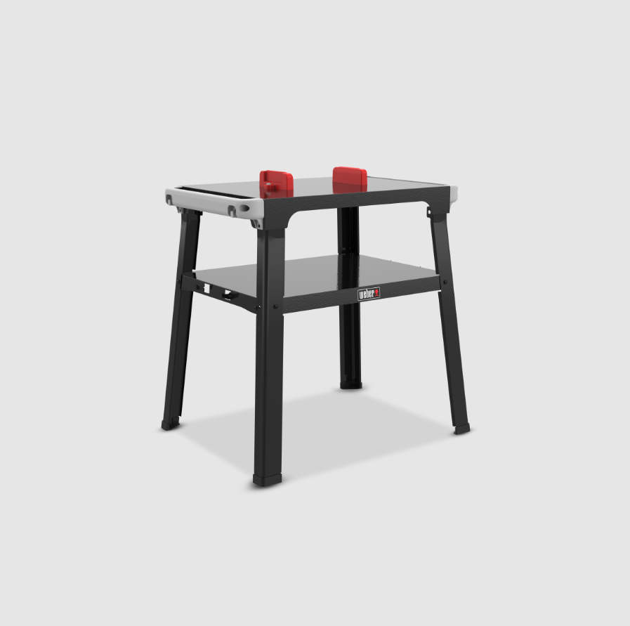 Configure o seu grelhador elétrico Lumin® ou Lumin® Compact Outdoor na altura perfeita para cozinhar com este suporte resistente e fácil de montar. As barras laterais na parte superior do suporte possuem dois ganchos para utensílios integrados e são compatíveis com acessórios Weber Works, como iluminação flexível, suporte para condimentos e muito mais (vendidos separadamente). O suporte também inclui uma prateleira para guardar os itens essenciais para grelhar, com mais dois ganchos integrados para pendurar as grelhas quando não estiverem a ser utilizadas.