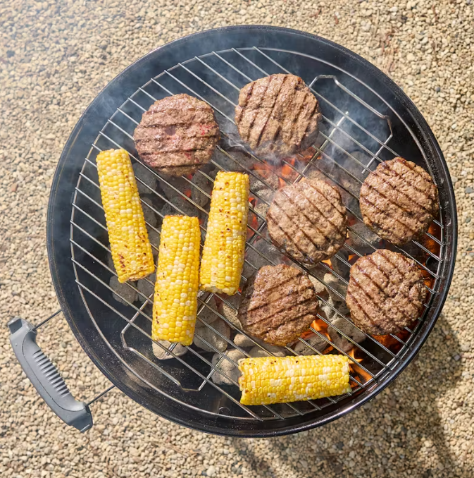 Acenda o seu grelhador a carvão Bar-B-Kettle e disfrute da comida deliciosa que preparou.