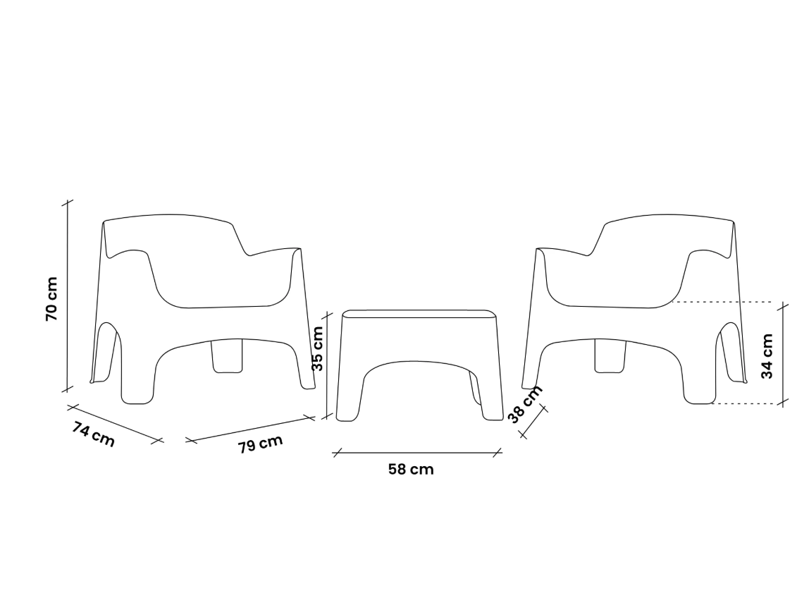 2 cadeiras empilháveis1 mesaCadeira: 79x74x70 Mesa: 58x38x35